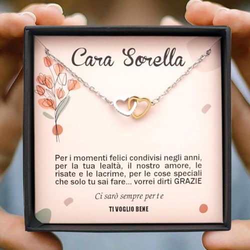 – JEWELLERY BOX AND GREETING CARD INCLUDED: This necklace comes in a jewellery box with a personalised message for your sister. When you open it, you will discover the jewellery and read the message immediately. Excitement guaranteed!