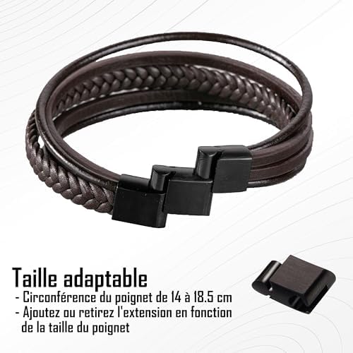 The clasp extension allows for easy adjustment, making this leather bracelet suitable for a wrist circumference of 14 to 18.5 cm, fitting perfectly for men and teenagers.