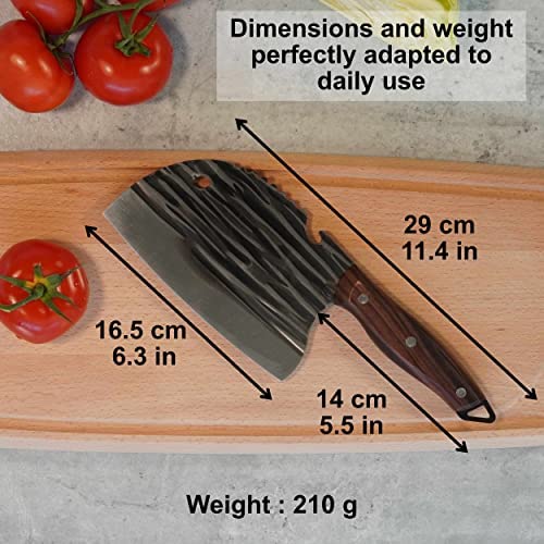 - Hand-forged 18/10 stainless steel blade