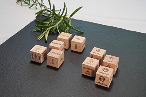 9 cubes in total: Each cube is laser engraved on birch wood. The cubes have an edge length of 2 cm, so are slightly larger than normal cubes. They are packed in a practical cotton bag (approx. 8 x 13 cm). A small instruction manual is included (English language not guaranteed)