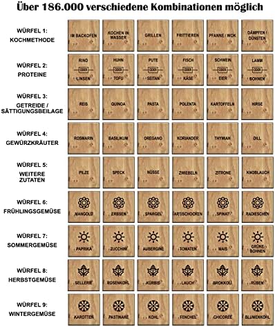 Cubes: with the 5 base cubes as well as the vegetable cube of the current season. Collect the ingredients together: either follow the specifications on the cubes exactly or alternatively use them as inspiration. Cooking: Come up with something, experiment and above all have fun
