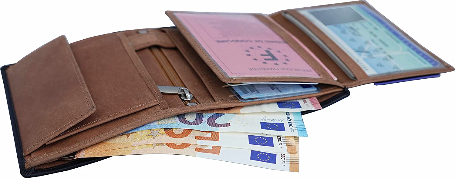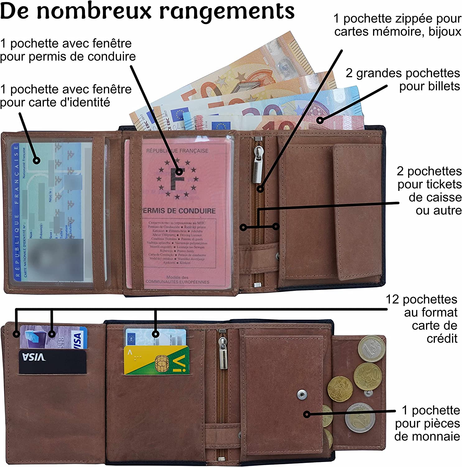 It is specifically tailored to the French market with designated pockets for ID cards and driving licenses (both old and new formats).