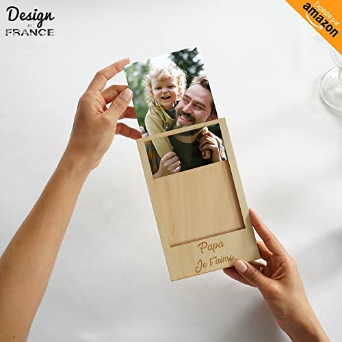 • If you want to change the decor of your kitchen, add a joyful touch to your living room, or convey a message to your father, this handmade natural wood photo frame is ideal for accommodating a photo of standard dimensions 10×15 cm.