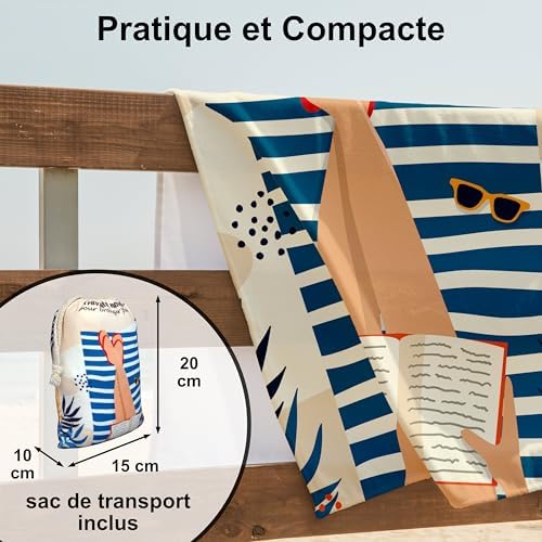 Use this towel as a beach tent to shelter yourself from the sun, as a fouta for a bohemian look, or even as an ultra-absorbent bath towel. Its sand-resistant fabric allows you to enjoy the sand without it sticking.