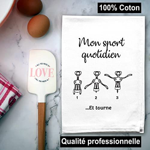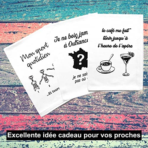 Set of 3 kitchen towels for wine enthusiasts (text in french):