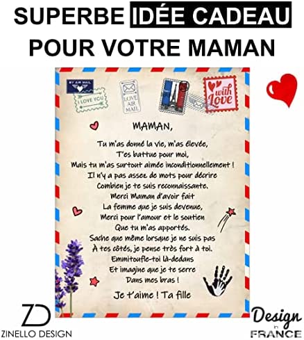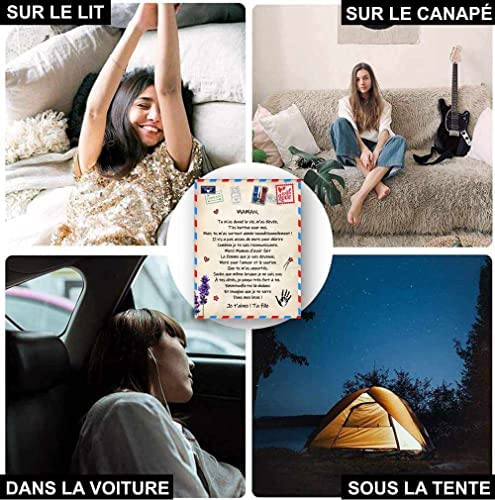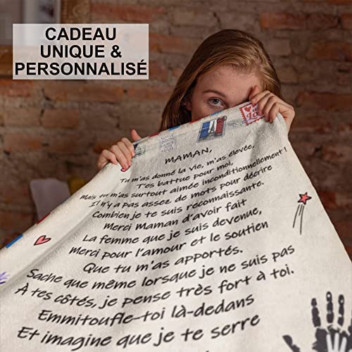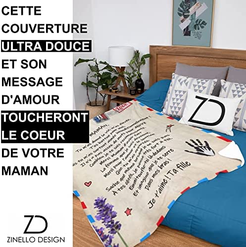 The message for the Personalized Blanket to Give to Mom from “Your Daughter” (text in french):