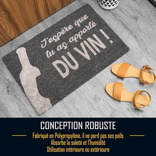 • Personalized Welcome with Humor: Redefine the welcome at your door with the personalized doormat from ZINELLO DESIGN. Its unique and humorous message, “I hope you brought wine,” adds a touch of lightness to your entrance, making this mat an ideal gift for a housewarming.